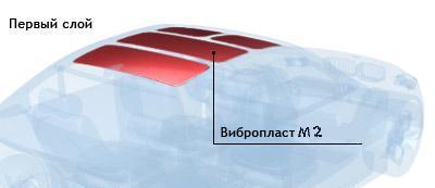 - Использование материала Вибропласт М1 для проклейки крыши не даст хорошого эффекта в силу его малой толщины.
