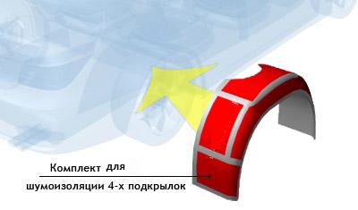 Комплект для подкрылок возможно использование любого вибропоглощающего материала, например Вибропласт М2 или М3.